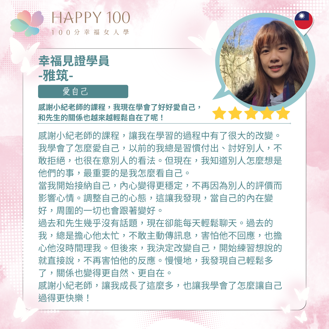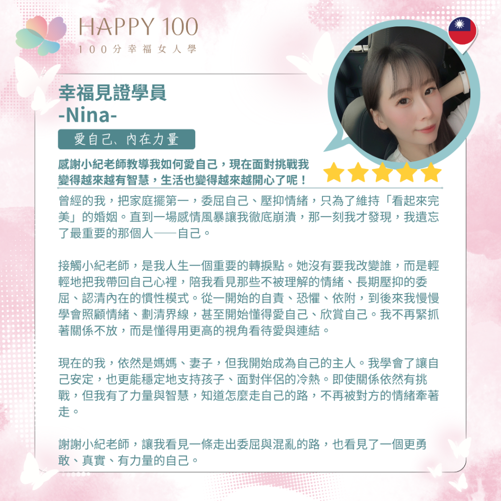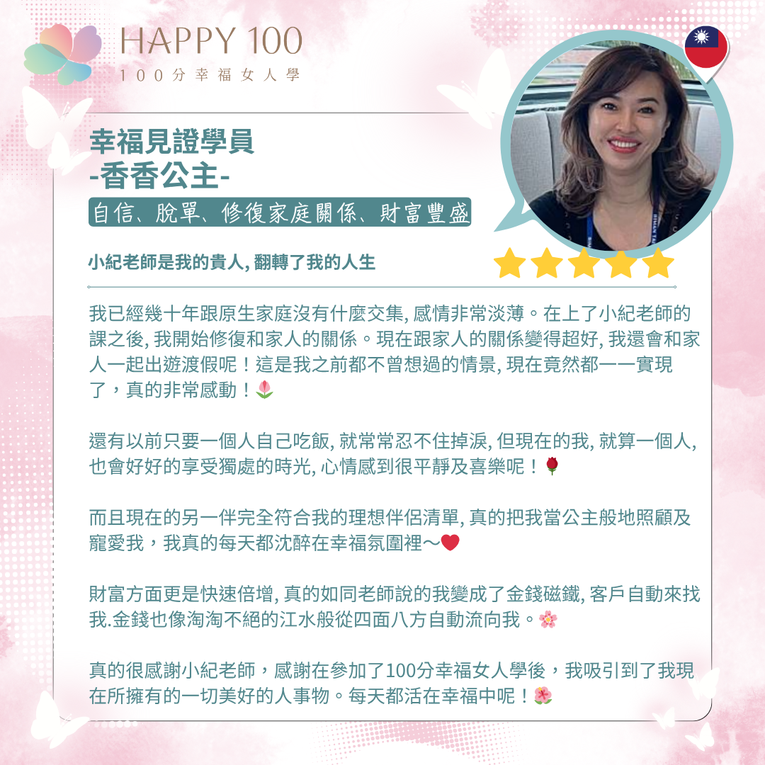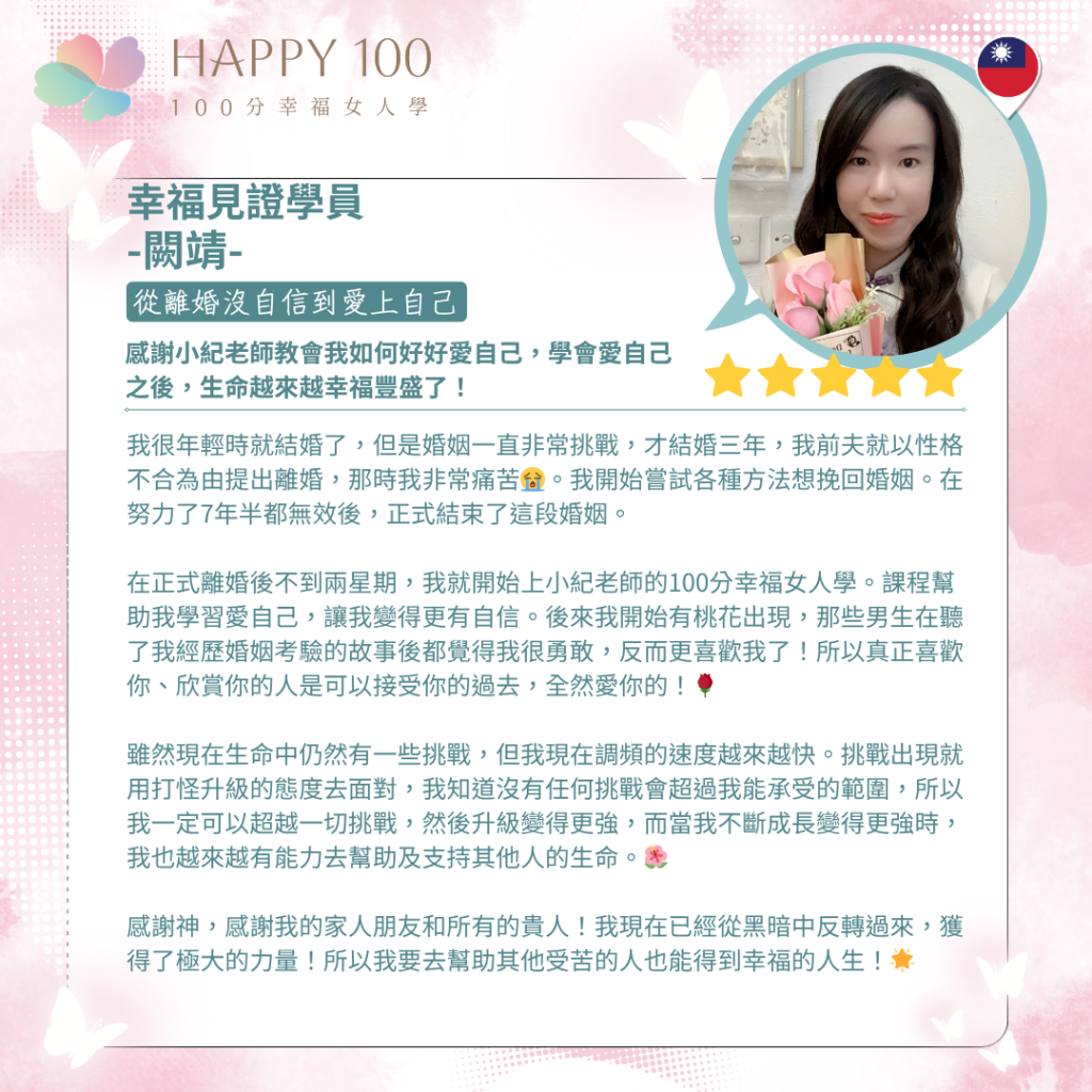 正式離婚後,她接觸了小紀老師的 100 分幸福女人學。