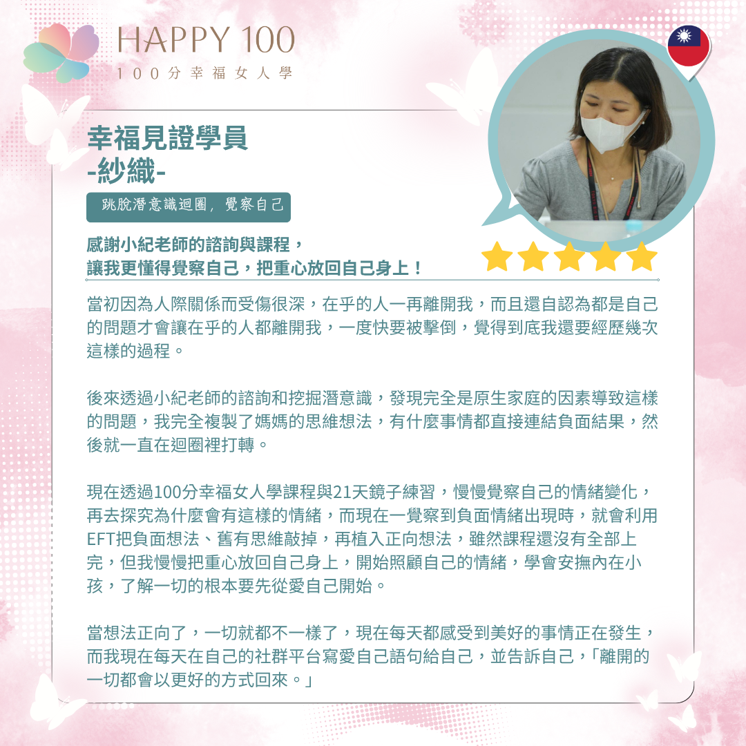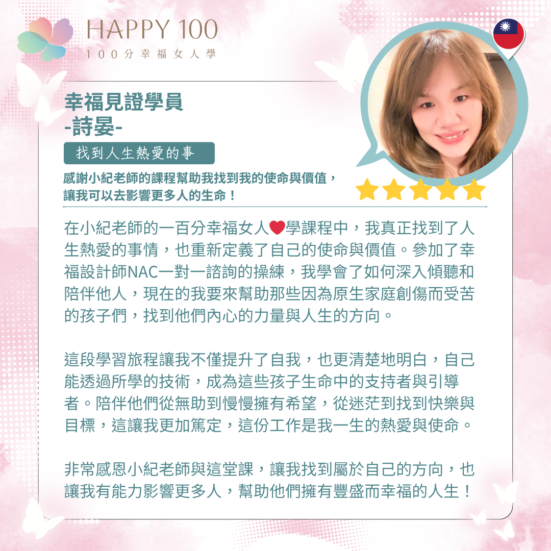 - 專注於華人女性的情感成長與幸福設計